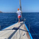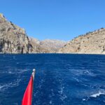 Bei der „Überfahrt“ von Kythira nach Kreta wollten wir eigentlich in Antikythira Halt machen. Die Hafenführer raten aber bei Nordwinden dringend davon ab. Nur mit Stagsegel kommen wir problemlos und bequem nach Gramvousa. Das ist eine kleine vorgelagerte Insel ganz im Nordwesten Kretas. Hier ist das Wasser so glasklar, dass man auch bei Mondlicht jedes einzelne Steinchen am sechs Meter tiefen Ankergrund erkennen kann. Der Wind ist inzwischen abgeflaut. Am nächsten Morgen erkunden wir die venezianische Festungsanlage auf dem ca. 100 m hohen Berg vor unserem Ankerplatz. Wegen der Hitze sind wir schon sehr früh dran und anfangs ganz alleine auf der mittelalterlichen Burg. Zurück am Schiff treffen schon die ersten Ausflugsboote ein. Zuerst kleinere Schiffe und später sogar eine umgebaute Fähre mit hunderten Menschen an Bord. Auch hier halten wir es zwei Tage gut aus.