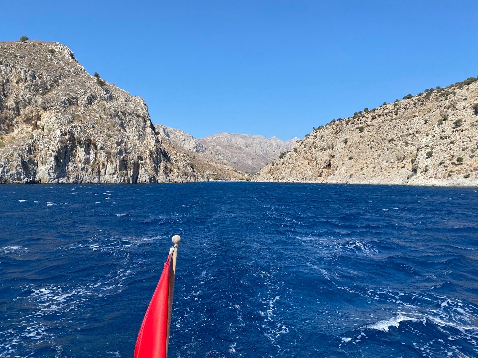 Nächster Halt: Die Bucht Bali. Auch dieses Ankerplatz kennen wir schon aus 2019, nur dieses Mal ankern wir wegen der nordwestlichen Winde im Westteil der Bucht. Köstliches Lamm-Kleftiko (wieder einmal!) erfreut uns abends in einem Restaurant mit schönem Meerblick. Einen Tag haben wir noch Zeit, bevor Heraklion angesagt ist. Den verbringen wir auf der Insel Dia. Mittag treffen wir in der Bucht Panagia als zweites Schiff ein. Innerhalb zwei Stunden sind wir von Tagesausflüglern umringt. Jeder hat seine eigene Musik und auch sonst … Ab 19 Uhr kehrt Ruhe ein, wir sind wieder alleine. Am nächsten Tag kommen dieselben Schiffe schon vormittags.
