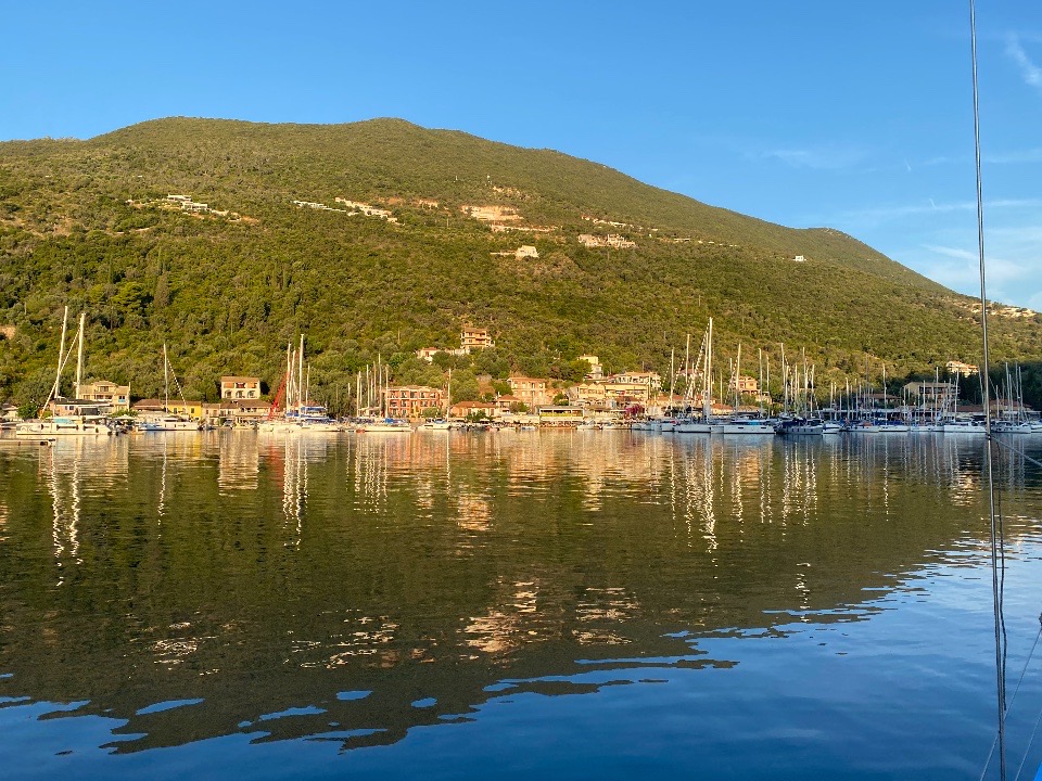 Vathi auf Ithaki laufen wir als nächstes an. Der Ankergrund vor dem Ort ist gut besucht. Richtig touristisch wird es erst wieder am Mittwoch in Phiskardo. Der Hafen rappelvoll, am Nordostufer, das von Ankerliegern besetzt ist, findet sich noch eine Lücke. In einem Restaurant hinter der Strandpromenade esse ich sensationelles Lamm.