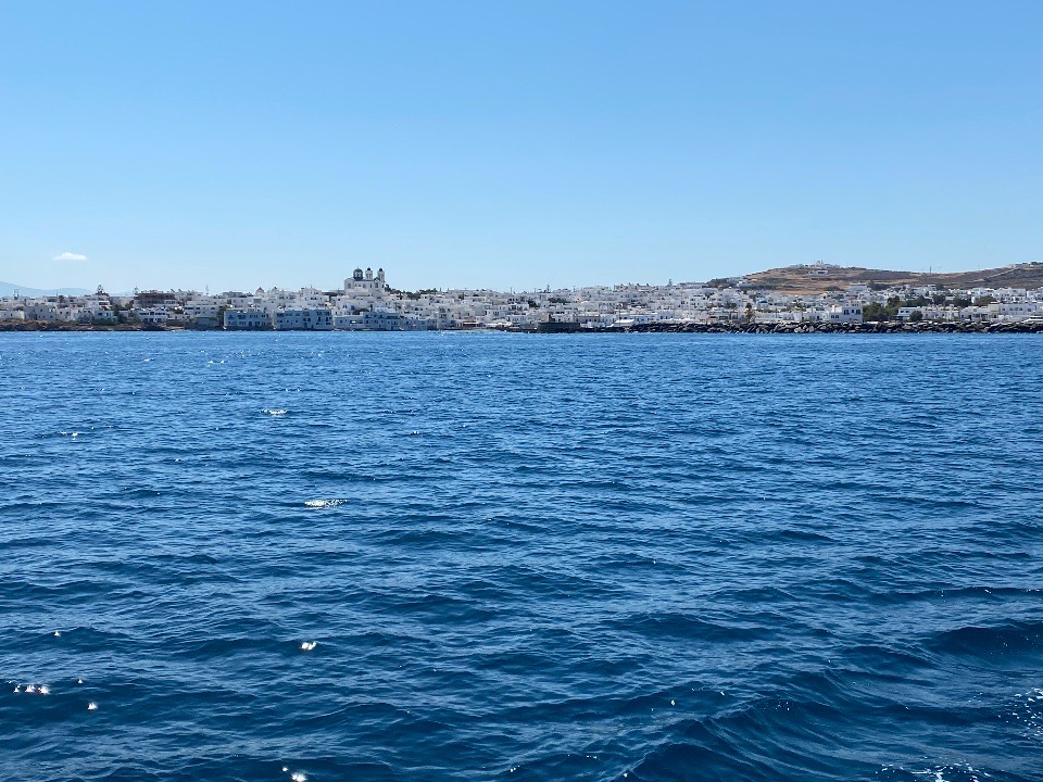 - Die Skyline von Naoussa auf der Insel Paros.