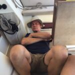 Der zweite Juli wir zu einem denkwürdigen Tag. Morgens viel Wind, daher wird das Stagsegel angeschlagen. Schon nach kurzer Fahrt weht nur noch ein Lüfterl. Stagsegel runter, Motor an. Keine Viertelstunde später ballert es aus NNO. Wir überlegen kurz, nach Kapsali abzulaufen, bleiben aber bei unserem Plan, nach Elafonisos zu segeln, weil 15 Meilen kürzer. Dafür aber Kreuzen unter Motor. Kurz vor dem Ziel geht Ulli unter Deck und meldet Wassereinbruch. Das ganze Schiff ist bis über die Bodenbretter voll, in unserem Bad herrscht Sauna-Temperatur. Endlich am Anker klärt sich die Lage schnell: Ein in unserer Brause gelagertes Brett hat sich aus der Verankerung gelöst, den Mischhahn der Brause berührt und den gesamten Inhalt des Wassertanks an die Tür des Badezimmers gespritzt. Temperatur 90 Grad. Die Aufräumarbeiten beschäftigten uns drei Stunden.