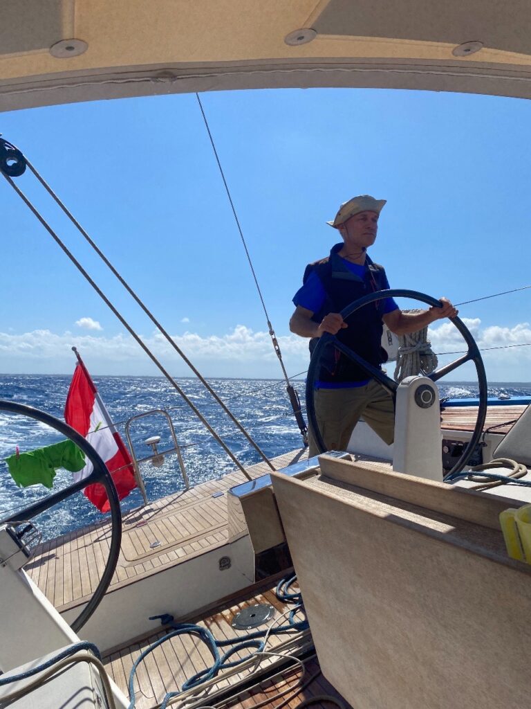 26.9.2025: Der 129. und letzte Tag auf See. Zwar unternehmen wir einen verzweifelten Versuch noch einmal die Segel zu setzen, scheitern jedoch an chronischer Windlosigkeit. Der neue Motor kommt dementsprechend zum Einsatz auf den letzten Meilen. Um 16:20 Uhr machen wir die Ganymed am Steg A1 fest.