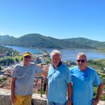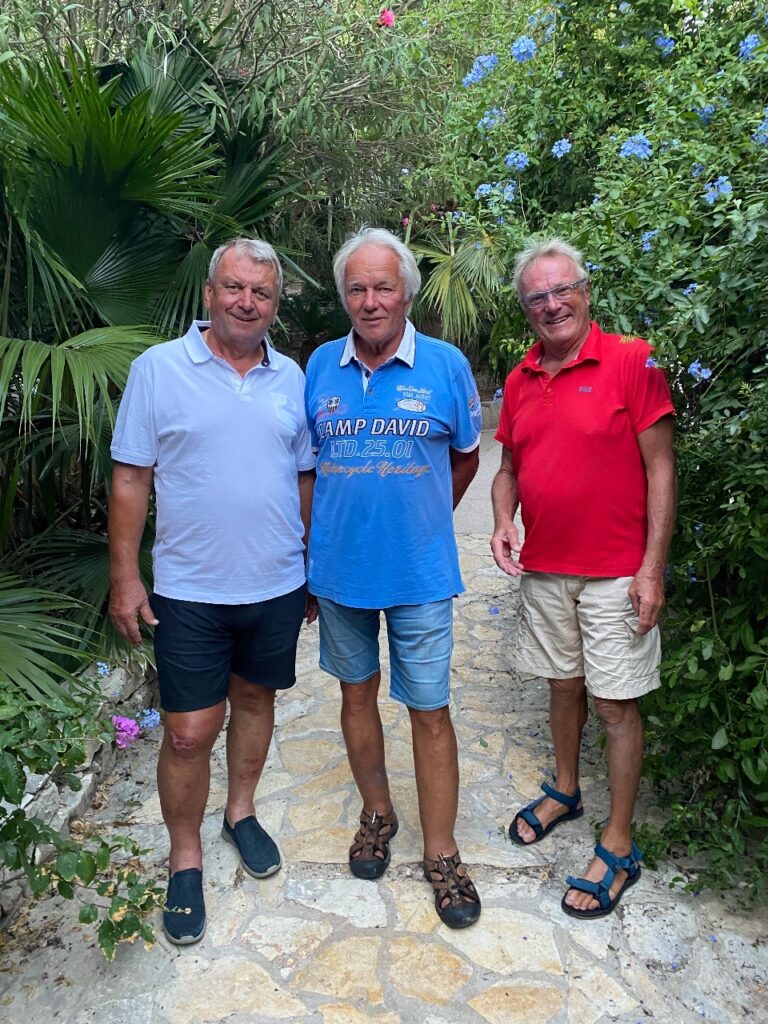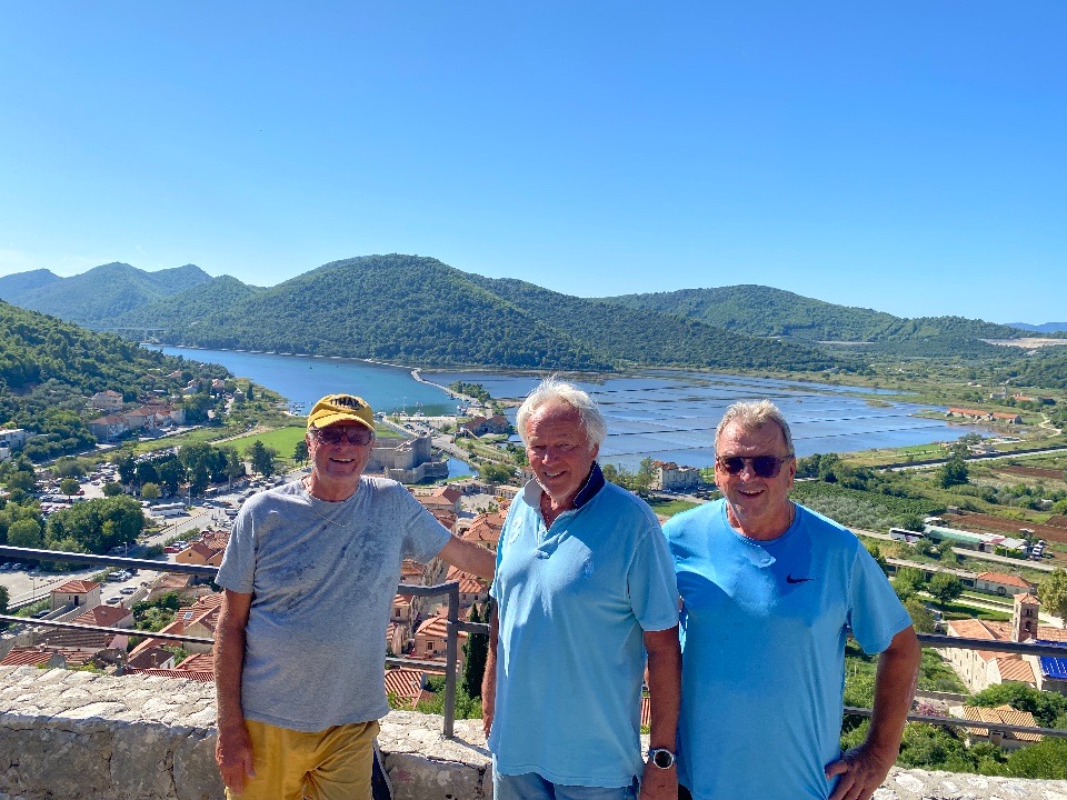 Am Samstag sind noch sechs Meilen bis Dubrovnik am Plan. In der Marina Frapa ist der Liegeplatz reserviert und Gerhard B. mit Franz warten schon auf uns, als wir um 10 Uhr dort einlaufen. Der Tag ist für eine ausgiebige Besichtigung von Dubrovniks Altstadt reserviert. Am Sonntag Morgen verabschieden wir uns vom Felbi und segeln nach Ston. Gemütlich bei einem Bier sitzend fährt ein alter Bekannter mit seinem Beiboot in den Hafen. Andi, ein Kärntner, den wir von einigen Austria Cups kennen, ankert vor der Einfahrt nach Ston. Gemeinsam essen wir zu Abend in der Altstadt.